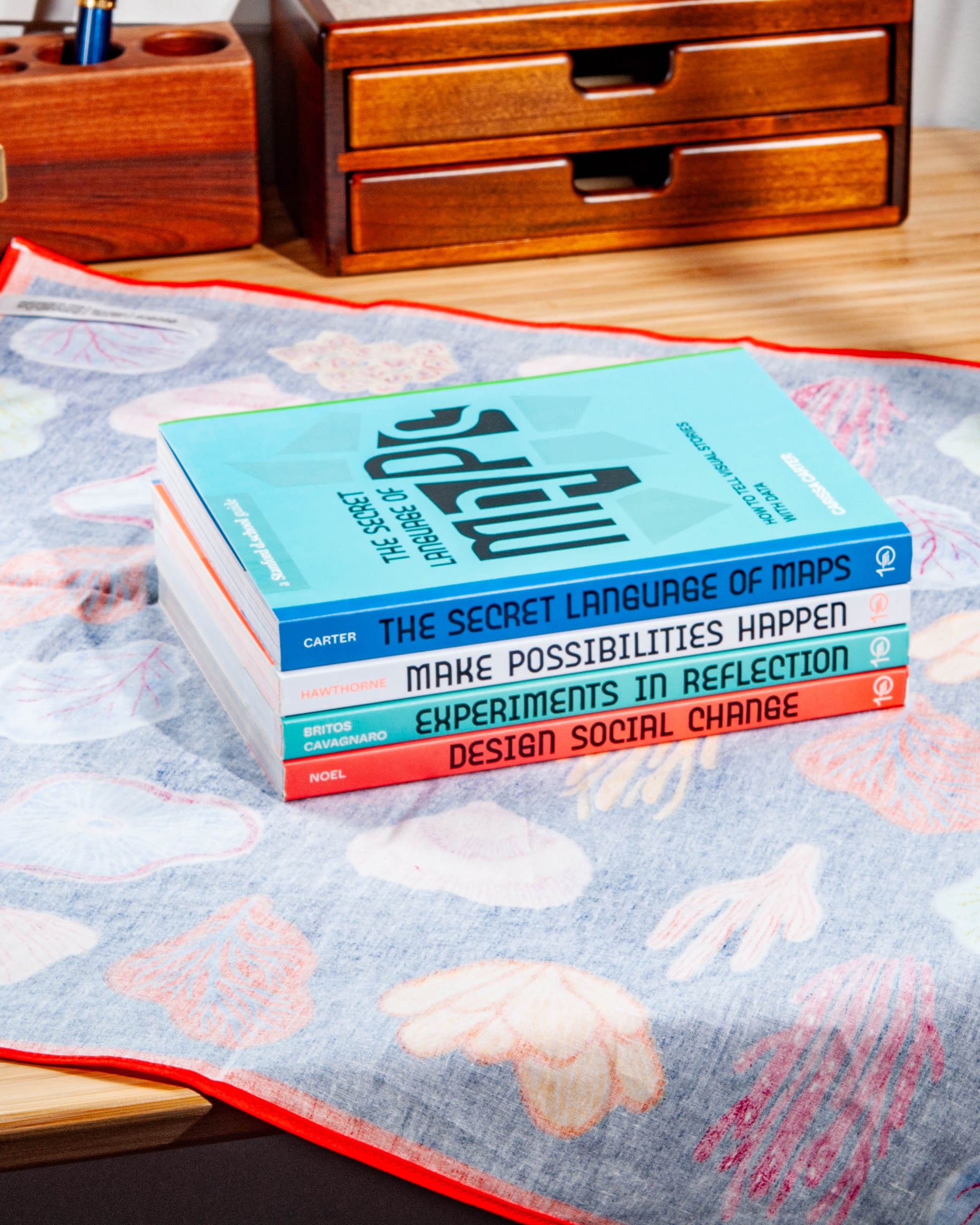 Our friends at Danica offer this as a bandana, and you are more than free to use it as one. But we'd like to offer it as a reusable wrap. It can be a gift, it can be something you need to transport. If it's relatively small, say A5 or smaller, you can use these with the Furoshiki technique and make a great impression.