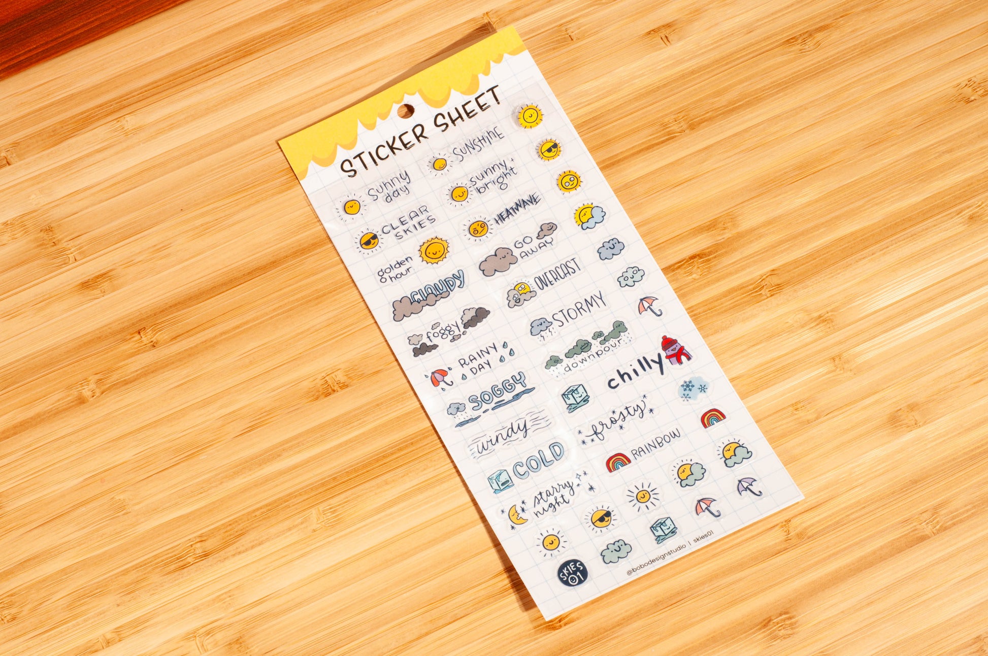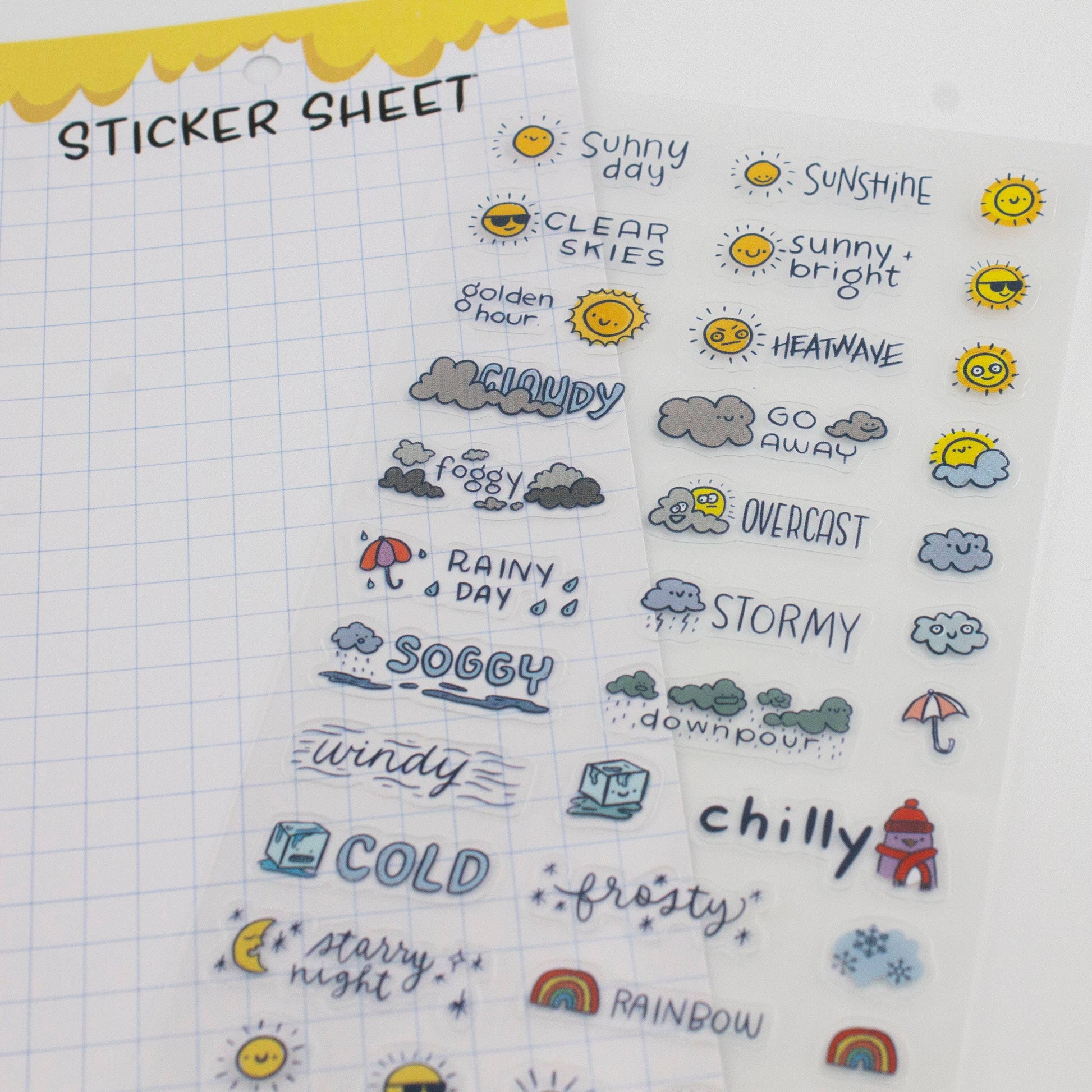 Whether you’re chasing sunshine or stuck in a soggy mess, this clear sticker sheet has your skies covered. Literally. Perfect for planners, travel journals, or just tracking how dramatic the weather’s been lately, this sheet includes icons for everything from “golden hour” to “downpour” to “ugh, foggy again.” Cute enough to make any rainy day a little brighter. Your journal just became its own weather channel. ⛅🌈❄️ Sticker Sheet is 9x17cm (approx 3x6")