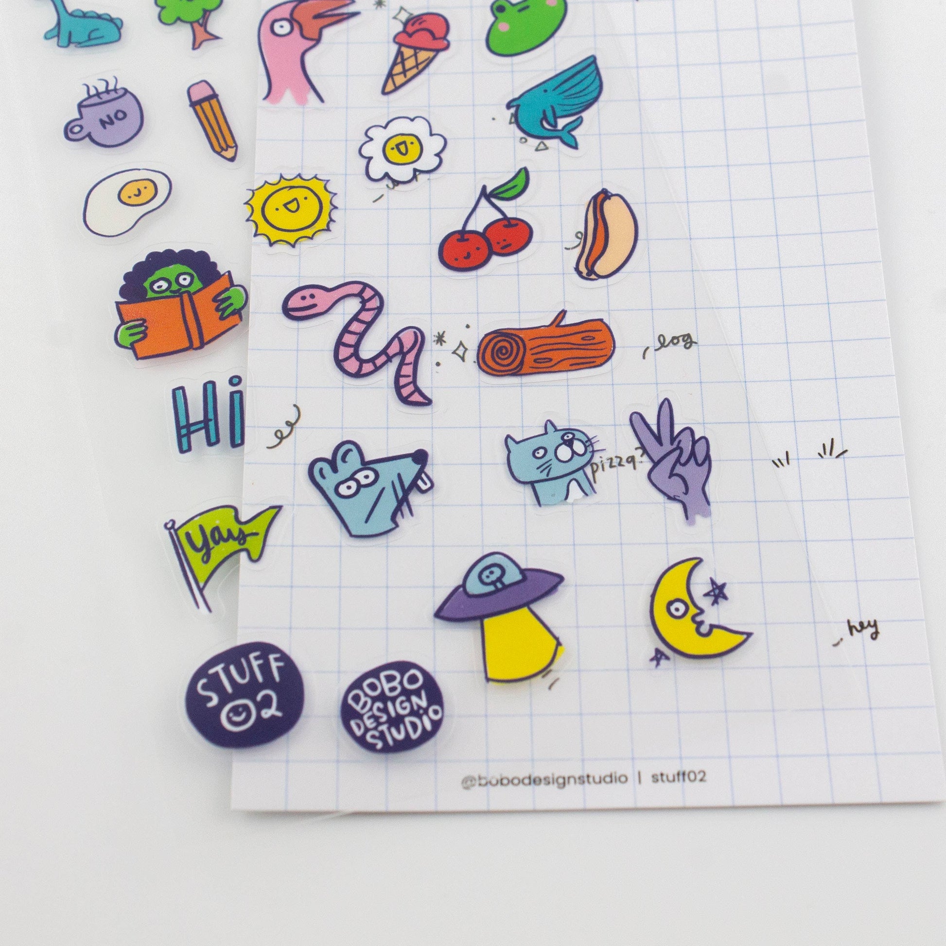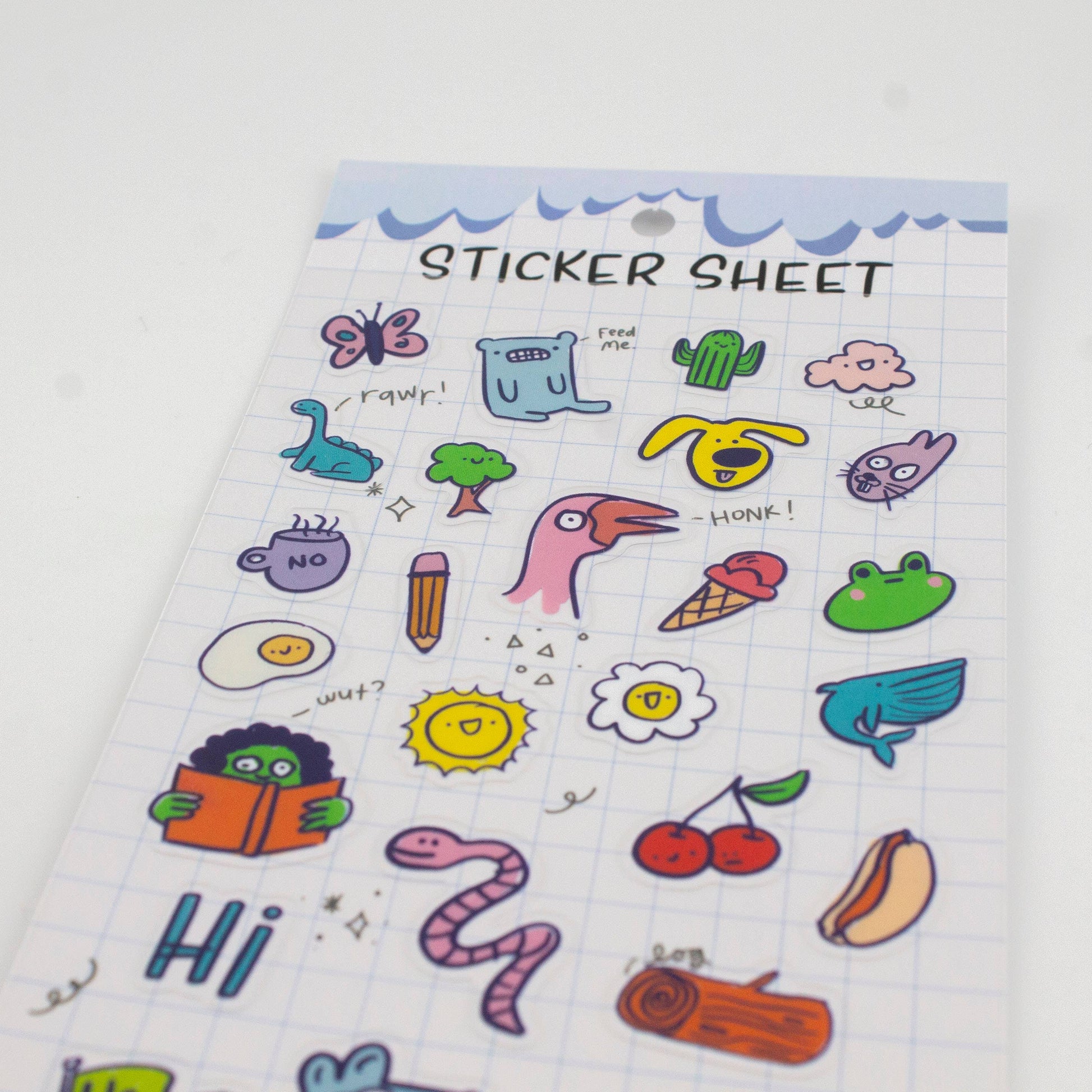 A worm? Yep. An alien? Sure. A silly goose yelling "HONK!"? Honestly, why not. This clear sticker sheet is a grab bag of weird little guys, random doodles, and the kind of chaotic cuteness your planner never knew it needed. Made for maximalists, doodle lovers, and anyone who wants their journal to have ✨personality✨ (or a log with legs). Stick first, ask questions never. Sticker Sheet is 9x17cm (approx 3x6")